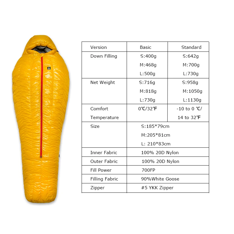 Ice Flame 20D Ultralight Camping Mummy 90% White Duck Down Sleeping Bag 3 Season Hiking 700FP YKK Z