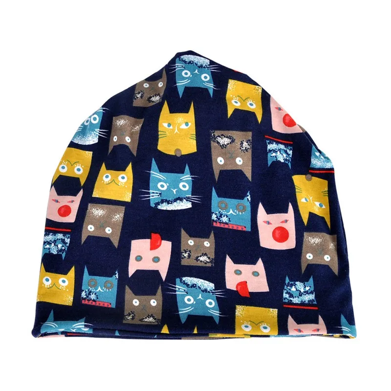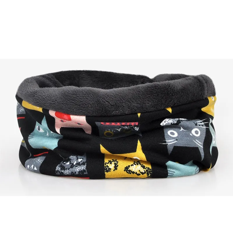 Autumn Winter kid teens Running Cap Scarf Simple Style Cat Printed Breathable Stretch Hat Neck Warm