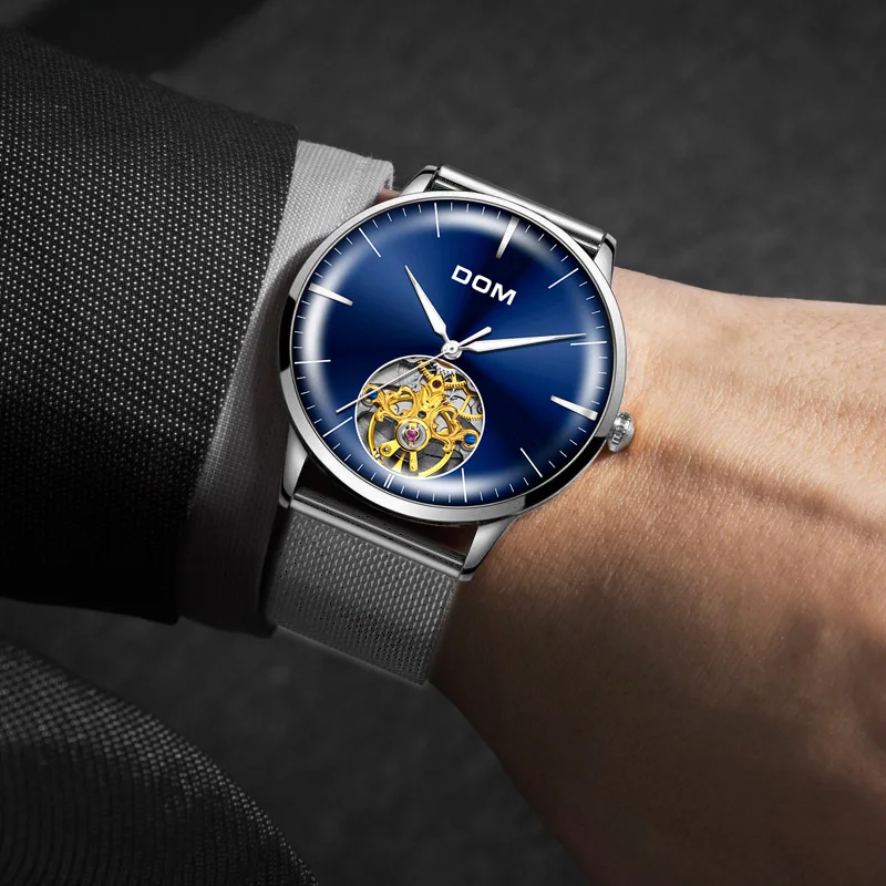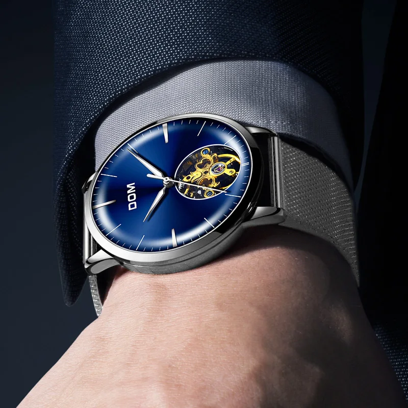 DOM Luxury Brand Watch Men Automatic Self-Wind Stainless Steel 3ATM Waterproof Fully Business Mecha